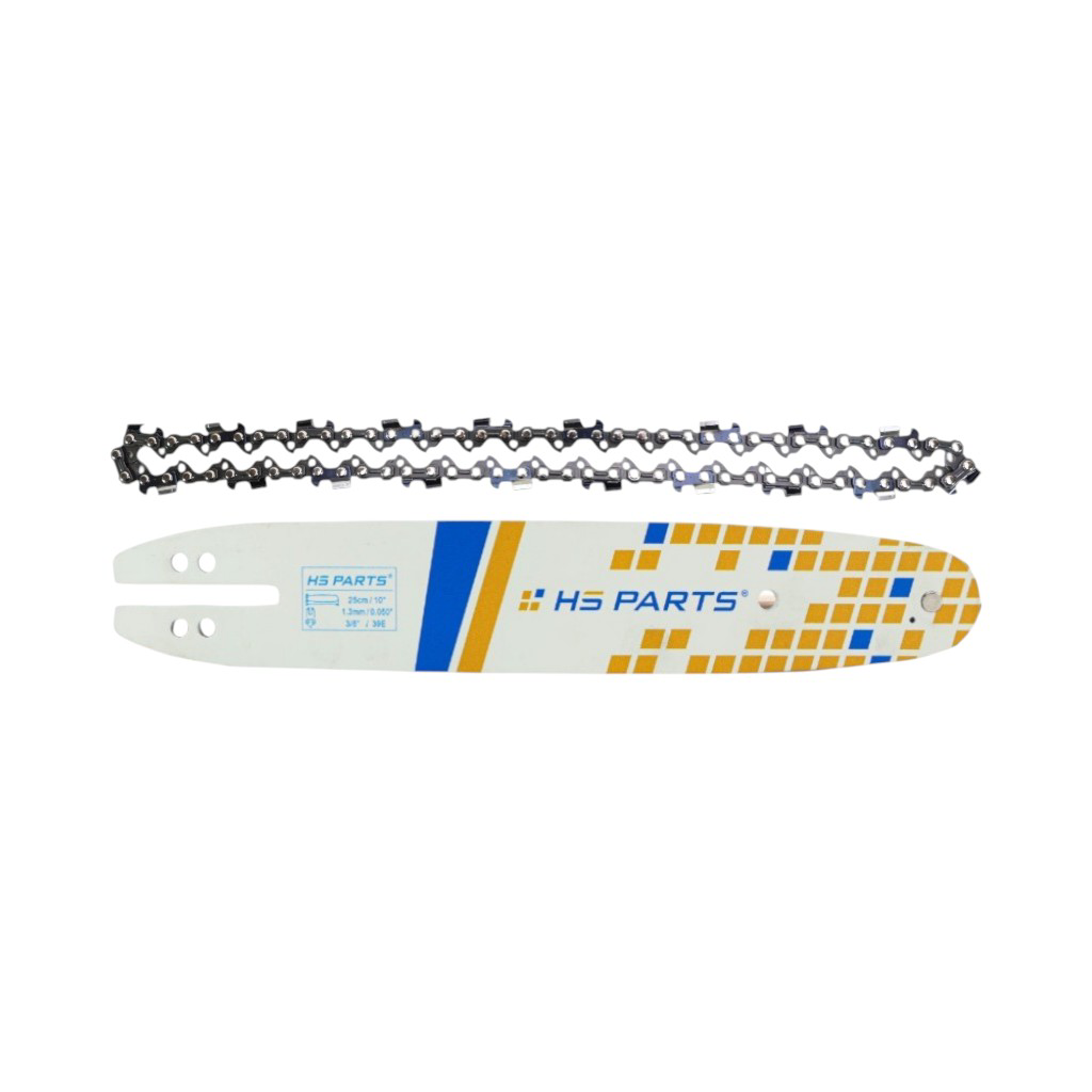 Popis a špecifikácia produktu: HS PARTS vodiaca lišta 10" (25 cm) 3/8" .050" (1,3 mm) + pílová reťaz 39 článkov hranatý zub pre Alpina 330 380 432 Bosch BES1300B KS400S KS40S KSE1300B Ryobi 35B CS36C CSE3330 McCulloch 10E 14E Makita DCS330S