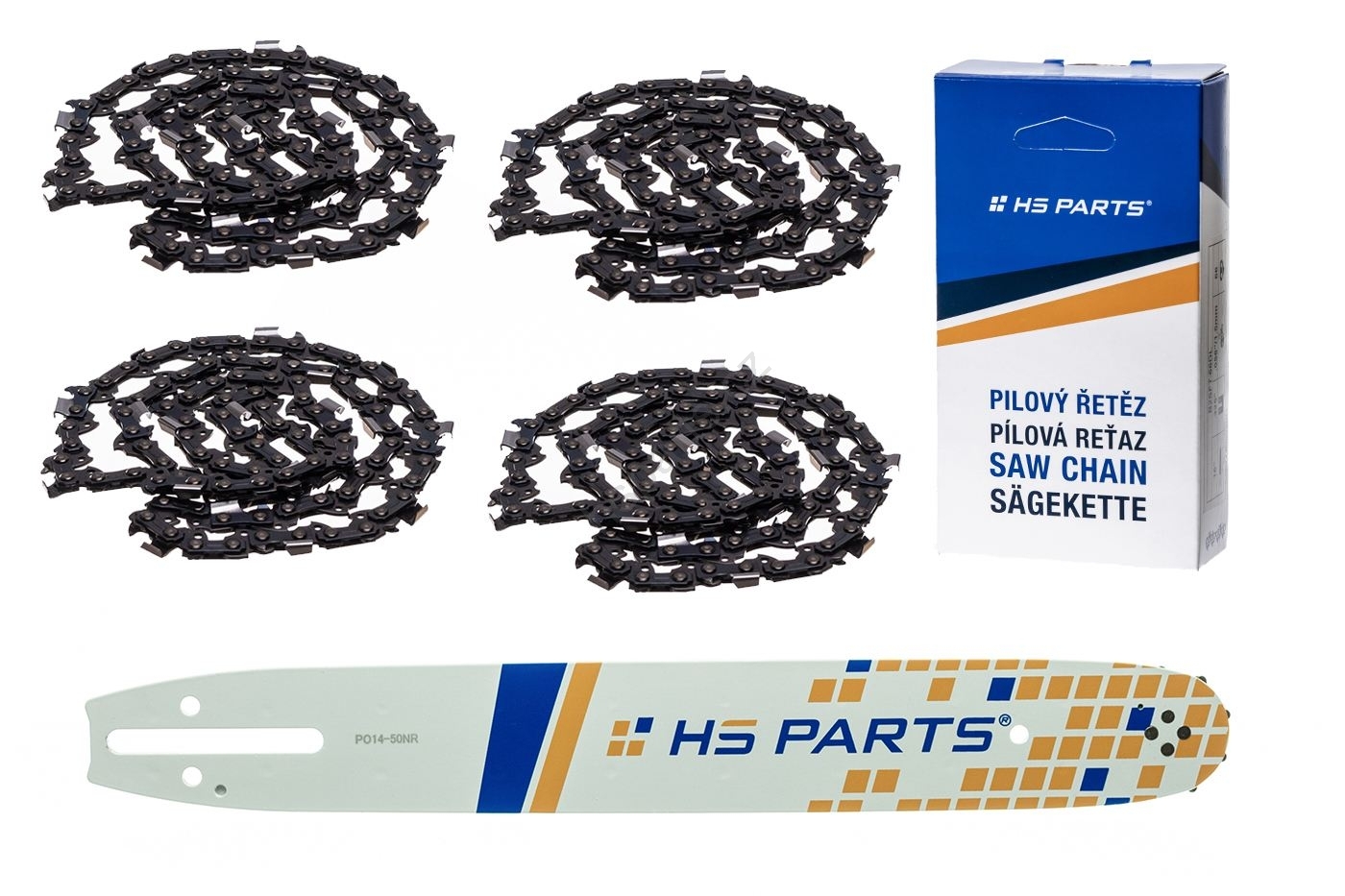HS PARTS poloprofesionálne lišty pre reťazové píly, sú vyrobené z Nemeckej ocele s použitím Švajčiarskych uzavretých ložísk. Konštrukcia z laminovanej ocele je vhodná pre väčšinu rezných podmienok. Lišty sú ľahké a jednoduché na ovládanie a vyznačujú sa menším spätným rázom.