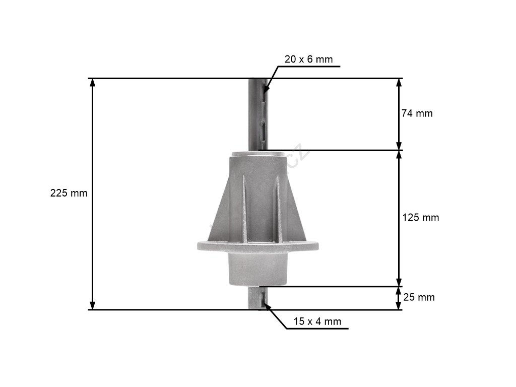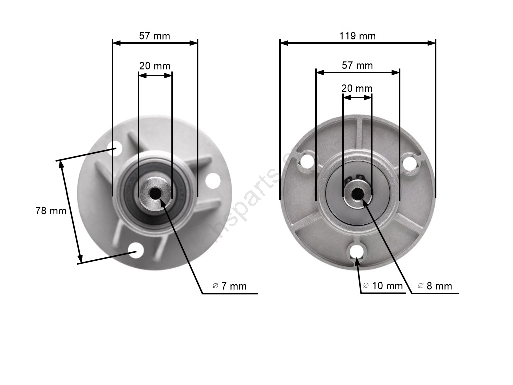 Popis a špecifikácia produktu: Mandrela žacieho noža pre záhradné traktory Castel Garden Honda Oleomac Solo Stiga Viking (OEM 1136-0479-01 382207200/1 6151 700 3500 82207200 CG82207-200-H0)