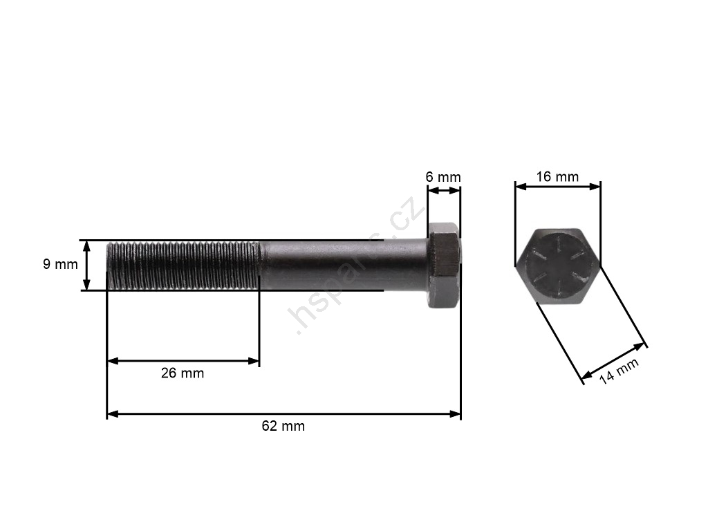 Popis produktu a špecifikácie: Skrutka žacieho noža jemný závit UNF 3/8" x 2-1/4" pre motorové kosačky a záhradné traktory celková dĺžka 62 mm priemer 9,40 mm