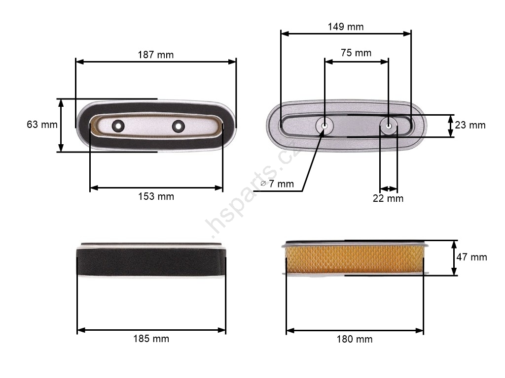 Popis a špecifikácia produktu: Vzduchový filter 175 mm x 45 mm pre motory Honda GXV160 HR216 HRU216 HRA216 HRU216D HUT216 HRU19 (OEM 17211-ZE7-W03 17211-ZE7-W01 17211-ZE7-W02)