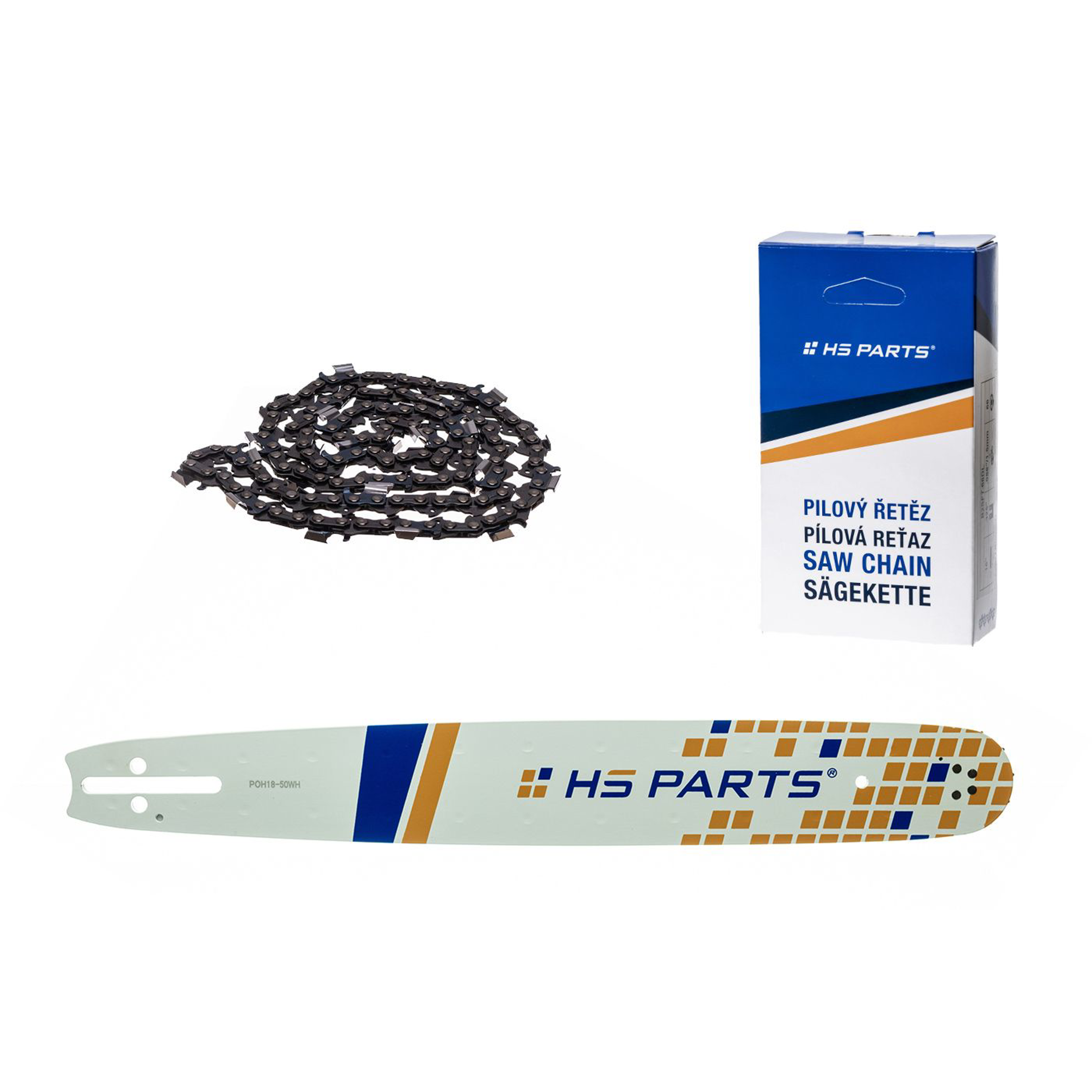 HS PARTS dodává profesionální řetězy s hranatým profilem zubu, s kulatým profilem zubu pro řezání prken, univerzálním profilem zubu a jako novinku řetěz s karbidovým zubem.