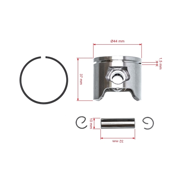 Popis a specifikace produktu: HS PARTS kompletní píst pro motorové pily Husqvarna 350 351 Jonsered 2054EPA 2055 2149 2150 CS2150 44 mm (OEM 503899603)