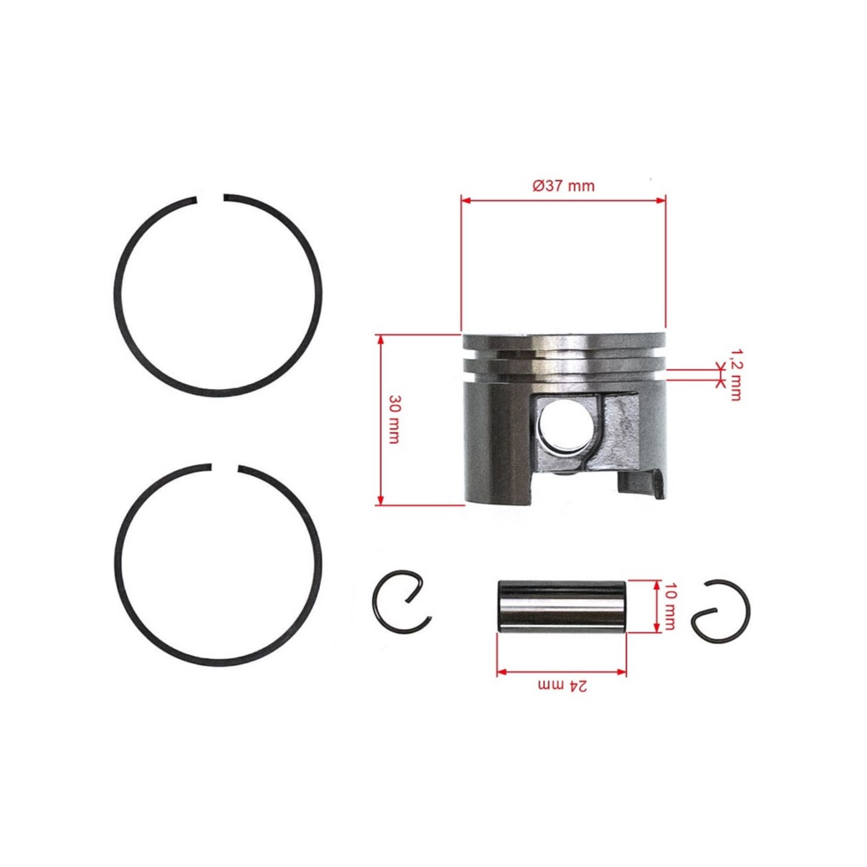 Popis a specifikace produktu: HS PARTS kompletní píst pro motorové pily Stihl MS192 MS192T 37 mm (OEM 11370302002)