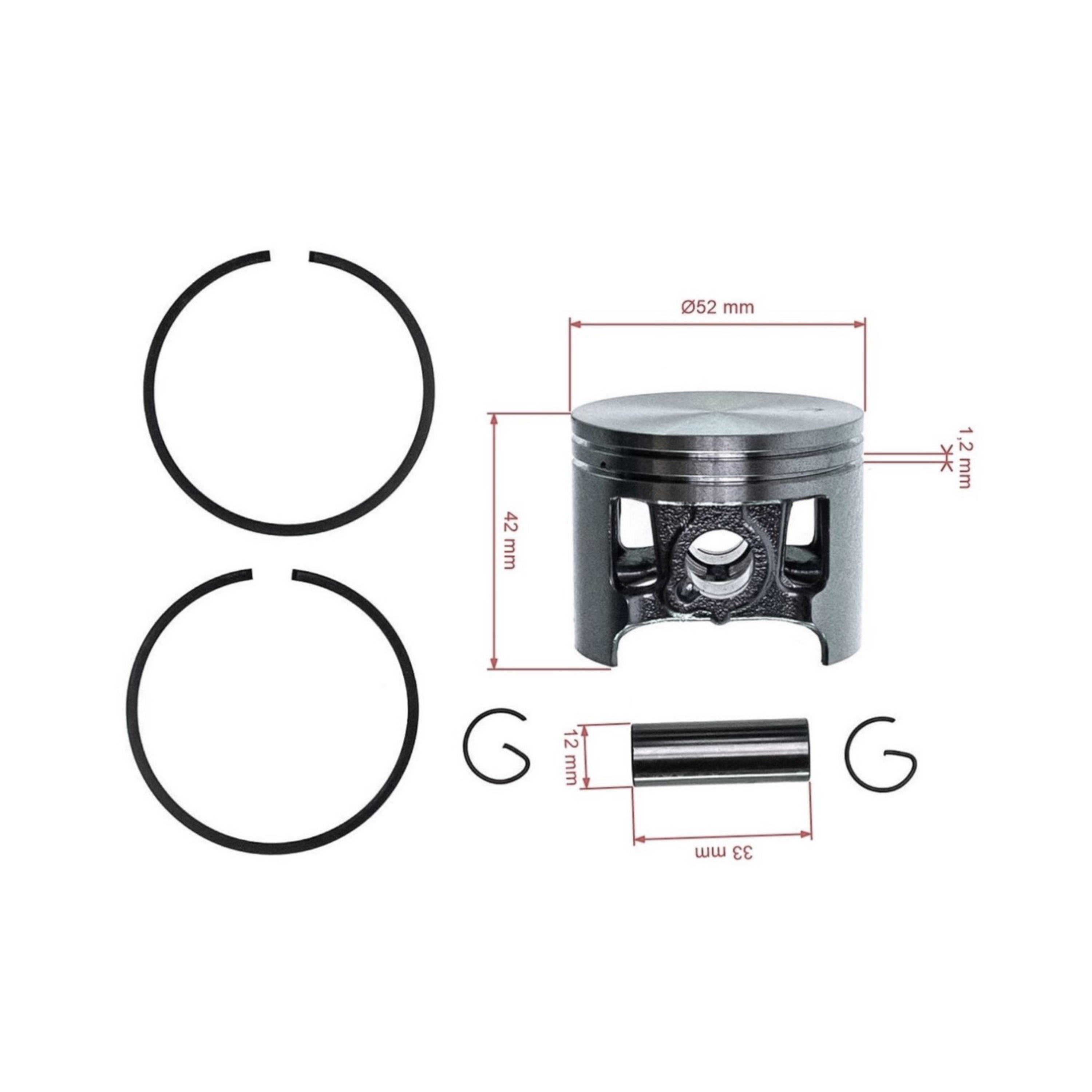 Popis a specifikace produktu: HS Parts kompletní píst pro motorové pily Stihl MS650 52 mm (OEM 11220302003)