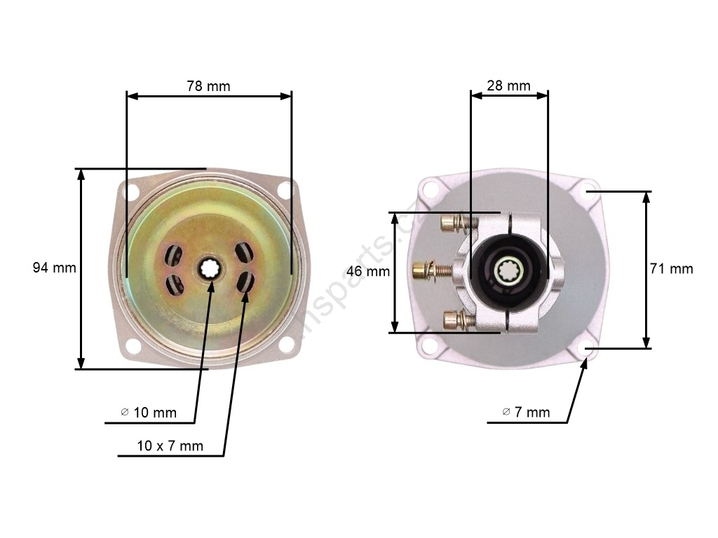 Popis a specifikace produktu: Kompletní příruba s bubnem spojky pro Čínské křovinořezy a křovinořezy z hobbymarketů s průměrem trubky 28 mm hřídel 9 zubů