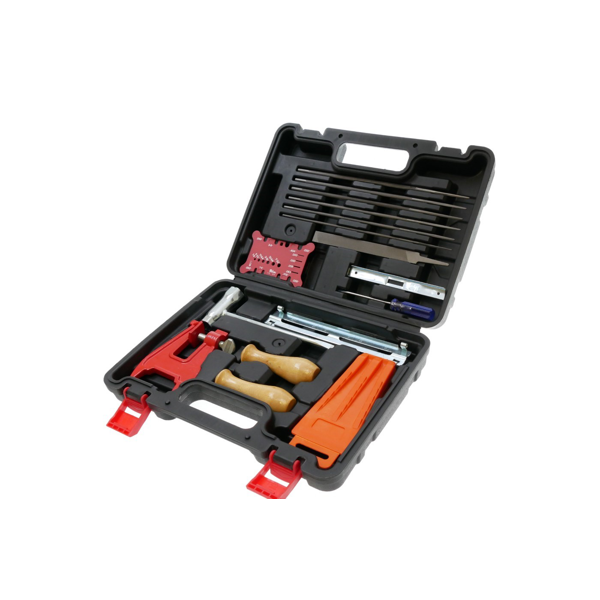 Popis a specifikace produktu: Přenosný kufřík s nářadím pro ostření pilových řetězů